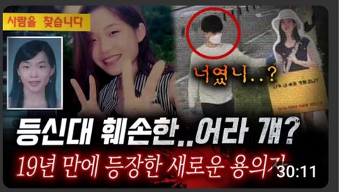 안녕하세요. ^^ 편한 오후 보내고 계시죠? 오늘 디바제시카 이윤희 실종 사건 영상이 올라왔더군요. 19년 간의 이윤희 실종 사건을 깔끔하게 잘 정리해 주셨어요. 그래서 글 올립니다. 이윤희 씨 아버님의 인사 말씀도 있으세요.