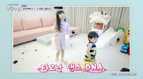 문희준은 “이게 약간 어떤 느낌이냐면 나의 어린 시절을 보고 있는 거다. 너무 똑같다. 나 어렸을 때 하는 행동을 그대로 한다. ‘똥 밟았네’라는 노래에 춤을 춘다. 혼자 춤을 딴다. ‘얘도 내 DNA를 갖고 태어났구나’ 이러면서 너무 신기하더라”고 아들 자랑을 했다.