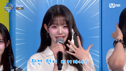 자신의 유행어를 말하고 있는 아이브 멤버 장원영. 엠넷 방송 화면