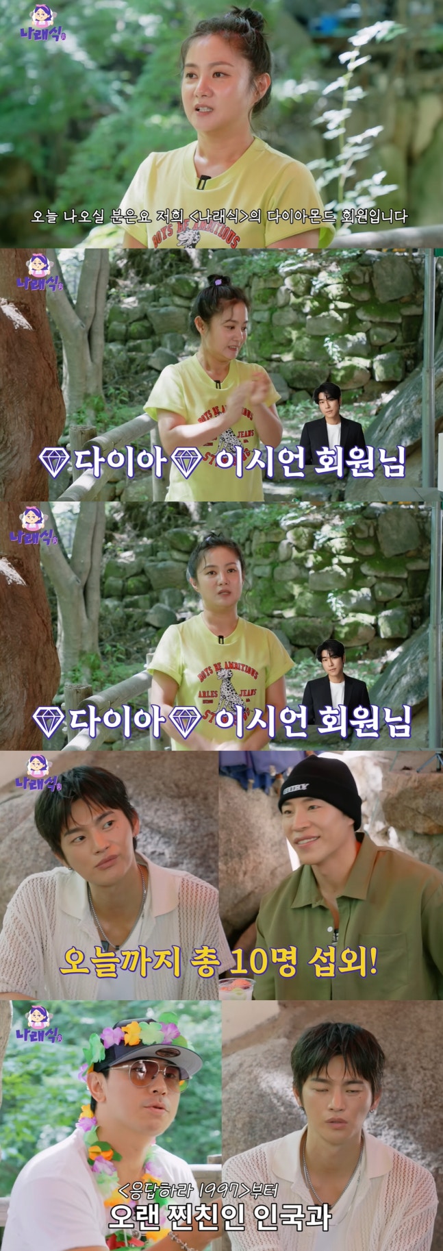 박나래는 본격적인 MT를 하기 전 이시언에게 꽃목걸이, 화관과 함께 공로패를 전달했다. 이제 가족이다. 이시언 밑에 김재욱, 허성태, 이준혁, 넉살, 이상이, 박보검이 있다"라며 이시언을 시켜세웠다.