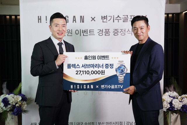 사진 제공=하이시간이에 주진모는 지난 26일 서울 압구정 하이시간 매장에서 열린 홀인원 세리머니에 참석해 이벤트 경품인 롤렉스 서브마리너를 직접 전달받았다. 해당 모델은 세계적으로 인기가 높은 고급 다이버 워치로, 공식 판매가 2700만 원을 웃돈다.주진모는 "평소 즐겨하는 골프에서 이렇게 뜻밖의 행운을 얻게 돼 너무 기쁘다"며 "이런 특별한 이벤트를 준비해준 '변기수 골프TV'와 하이시간에 감사드린다"고 소감을 밝혔다.