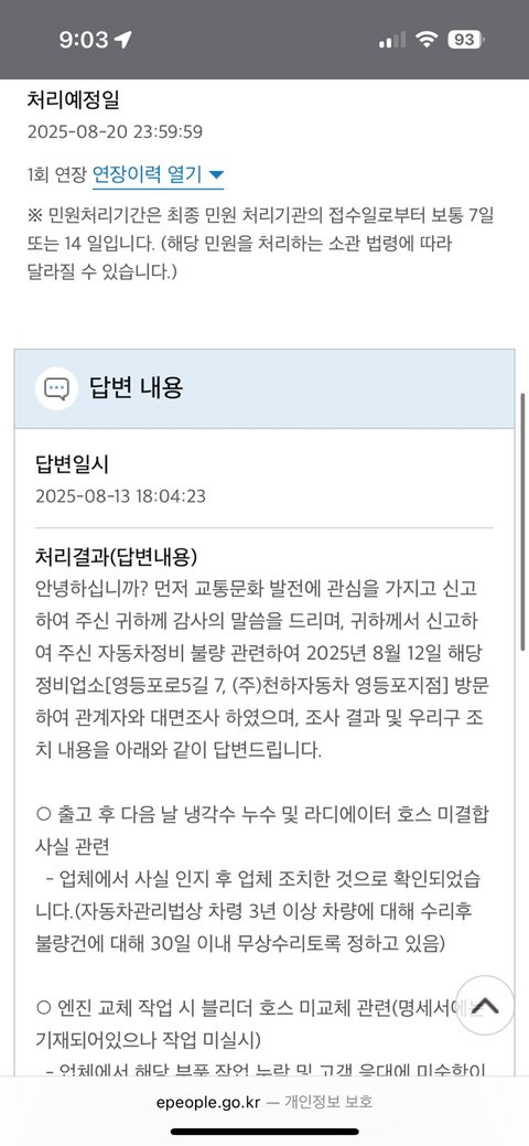 2. 국토부까지 공식 확인했음에도 정비업체는 “더 이상 대응하지 않겠다”는 입장을 취했습니다.