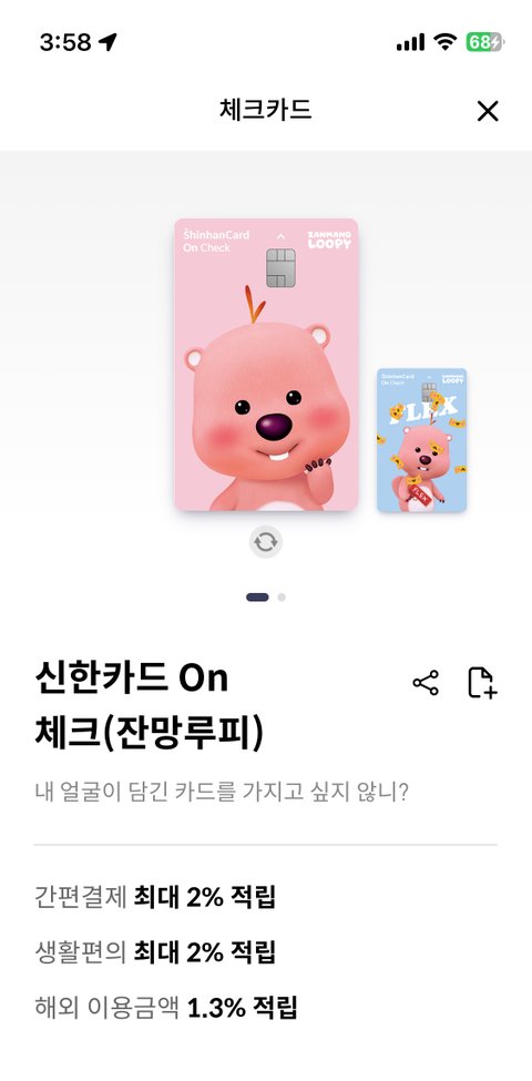 걔가 맨날 카톡할때 루피 이모티콘 썼거든 나 2년 전에 이 체크카드 발급받았는데 원래 지갑에 카드넣고다니거든 근데 카드 바로 못꺼내는게 불편해서 투명폰케에 넣고 다니려고