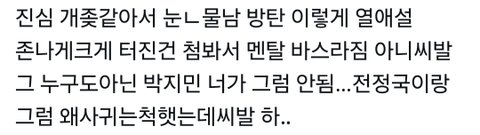 방탄 망했다는 글을 하두 많이 봐서 그런줄 알았음 객관적으로 몇년동안 단체활동 안하는데 대부분 탈덕하고 유입도 거의 없을거라는 추측...