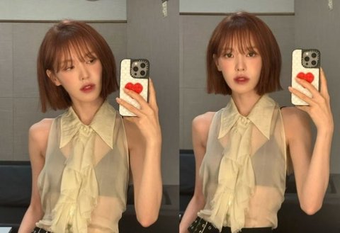 웬디 소셜미디어공개된 사진에는 속옷이 그대로 비치는 파격 시스루 패션의 웬디가 담겼다. 짧게 자른 붉은 컬러의 단발도 웬디의 몽환적인 비주얼을 한층 돋보이게 한다.