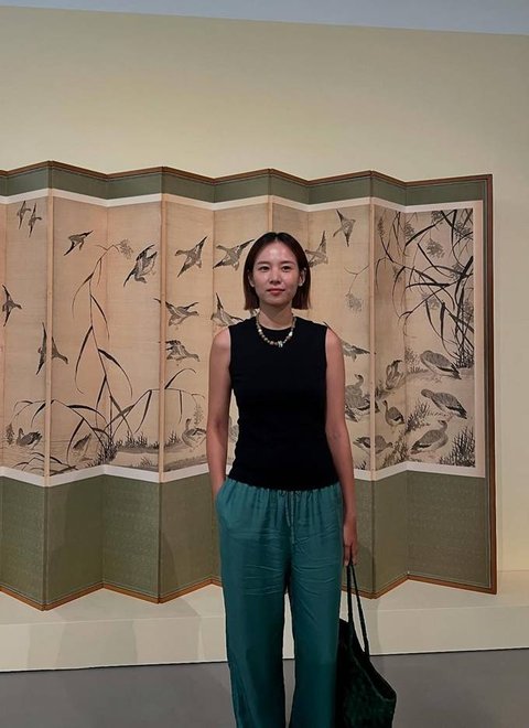 공개한 사진에서 조윤희는 슬리브리스 블랙 니트 톱에 청록빛 와이드 팬츠를 매치한 전시회 나들이룩으로 시원하면서도 모던한 무드를 자아냈다.