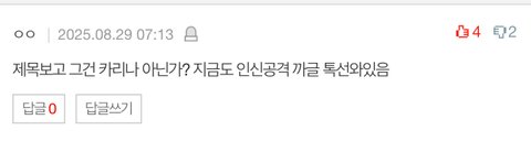 칼프들아 장원영을 까지 말라는 글에 와서 카리나를 언급하면서 왜 장원영을 까는거니?ㅉ원영이한테 열등감 있어서 그래?적당히해 이래서 카리나팬들은 욕먹을짓만 골라서 하는 비호감이라니깐ㅉ원영이를 욕하지 말라는 글에 카리나가 왜 나오냐고..