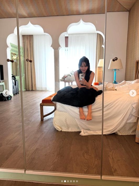 또 다른 사진에는 검정색 원피스를 입고 호텔 침대에 앉아서 셀피를 촬영하는 손예진의 모습도 담겼다. 손예진은 행복한 듯 웃으면서 베니스에서의 꿈 같은 시간을 즐기고 있었다. 또 손예진은 영화제에 함께 간 배우 이병헌, 박찬욱 감독의 투샷도 공개하며 추억을 공유했다.