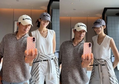 사진 속 두 사람은 거울 앞에서 커플 모자를 맞춰 쓰고 다정한 투샷을 남겼다. 임창정은 편안한 패턴 셔츠 차림으로, 서하얀은 민소매 화이트 톱과 팬츠에 가디건을 묶어 세련된 캐주얼룩을 완성했다. 특히 나란히 서 있는 모습에서 자연스레 드러나는 큰 키 차이가 눈길을 끌었다.