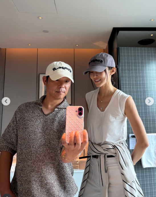 사진에서 임창정은 거울 셀카를 찍고 있는 모습이다. 그의 아내 서하얀은 남편 곁에 서서 미소를 짓고 있어 눈길을 끈다. 특히 서하얀은 키가 176㎝로 알려진 만큼, 남편 임창정보다 큰 키와 늘씬한 자태로 이목을 집중시킨다.