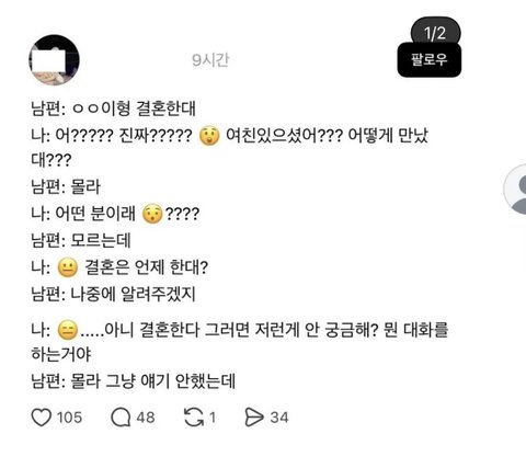 저 짤 남편=나임 지인 소식 들으면 그런갑다 싶고 딱히 궁금한게 없음 그래서 스몰토크가 안 됐구나..