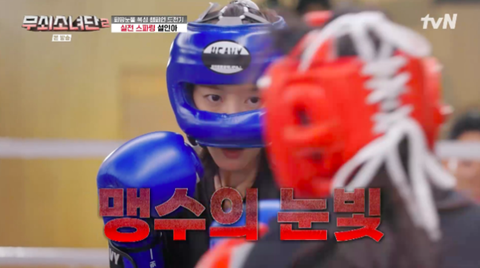 진지한 눈빛에 고조되는 분위기. 그리고 시작된 대결. 두 사람은 거침없는 스텝으로 탐색전을 벌이다 치열하게 주고 받기 시작했다. 김동현은 “(설인아가) 주먹이 세다. 상대방 선수가 멋있게 다가가려고 했는데 펀치 맞고 당황했다”라고 분석했다.
