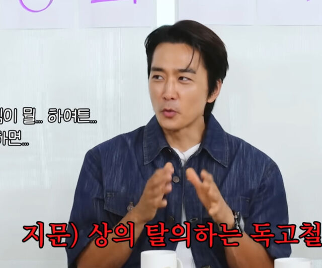 송승헌이 드라마 촬영 중 계속 상의 탈의신이 있어서 운동을 할 수 밖에 없다고 밝혔다. / 유튜브 '살롱드립 2'엄정화는 송승헌에 대해 구석에서 스쿼트를 맨날 한다고 말했고 송승헌은 "작가님이 뭐만 하면 내용과 상관없이 상의 탈의를 시킨다. 칼 맞아서 아픈데 옷 벗고 샤워한다. 몸살 나도 옷 벗고 샤워한다"라고 말하며 투정을 부렸다. 엄정화는 "진짜 올 누드로 찍었다"라고 언급해 장도연을 놀라게 했다.