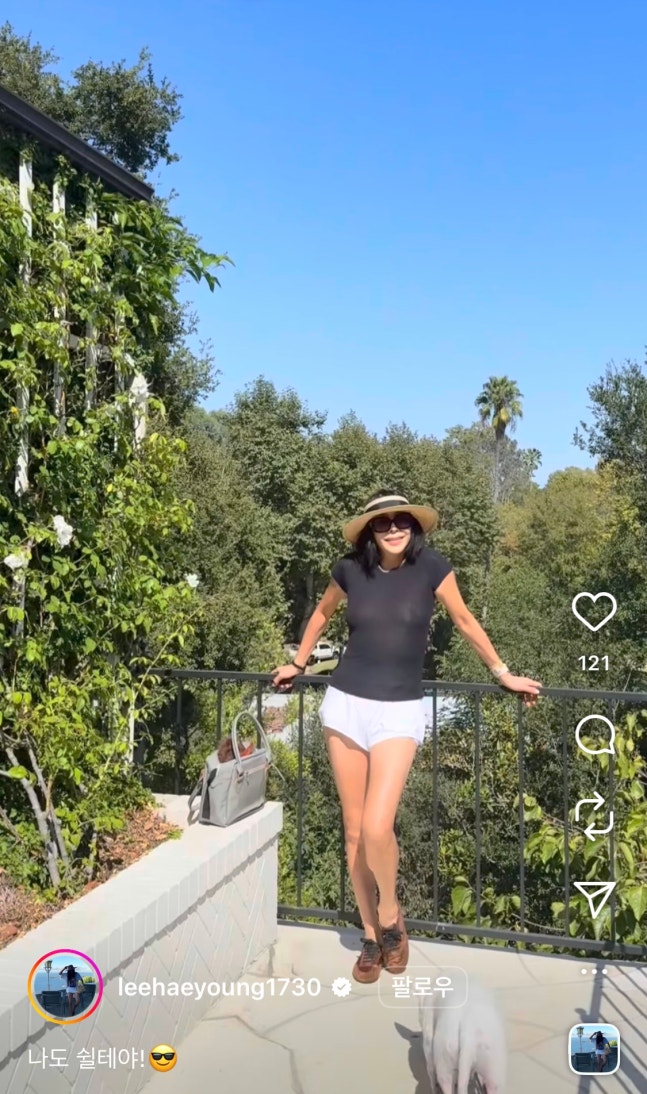 사진 속에서 이혜영은 나무가 가득한 곳을 배경으로 포즈를 취하고 있다. 밀짚모자를 쓰고 시스루 상의와 흰 핫팬츠를 입은 이혜영은 남다른 세련미로 눈길을 끌었다.