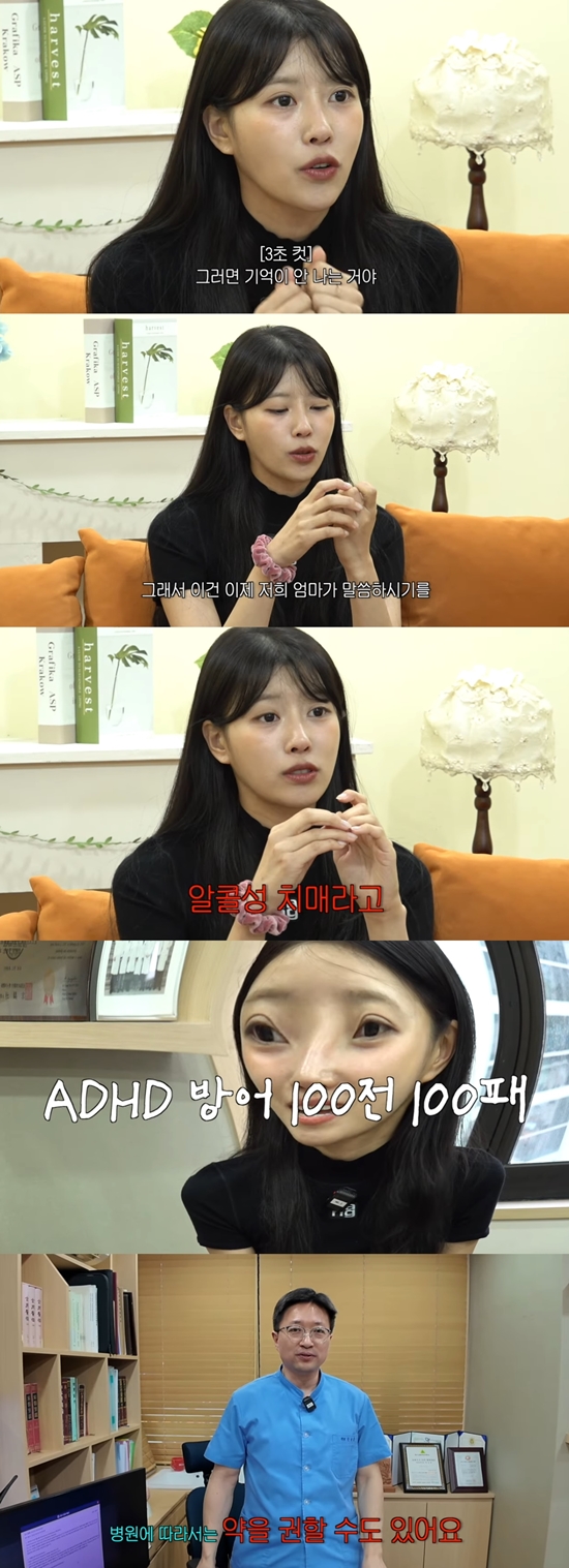 이어 그는 "저희 엄마가 말씀하시기를 알콜성 치매라고"라고 덧붙였다. 이에 제작진은 "요새는 성인도 ADHD가 진짜 많다고 한다. 그래서 연예인 최초로 ADHD 테스트를 한번 해볼까 한다"라며 ADHD 테스트를 권했다.