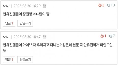 왜 장원영은 빠는 글만 한바가지고 안유진은 까글만 있음?