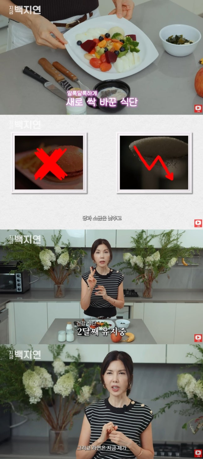 최근 백지연은 자신의 채널을 통해 두 달째 건강한 식단으로 바꿨다고 공개해 눈길을 끌었다.