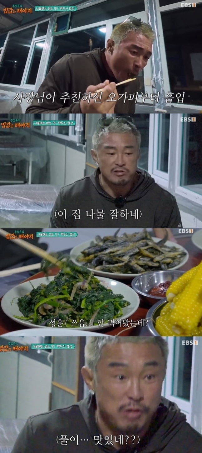 이후 추성훈은 백두산 나물로 만든 만두에도 감탄하면서 "고기가 안 들어간 게 맞냐"라고 물어 웃음을 더했다.