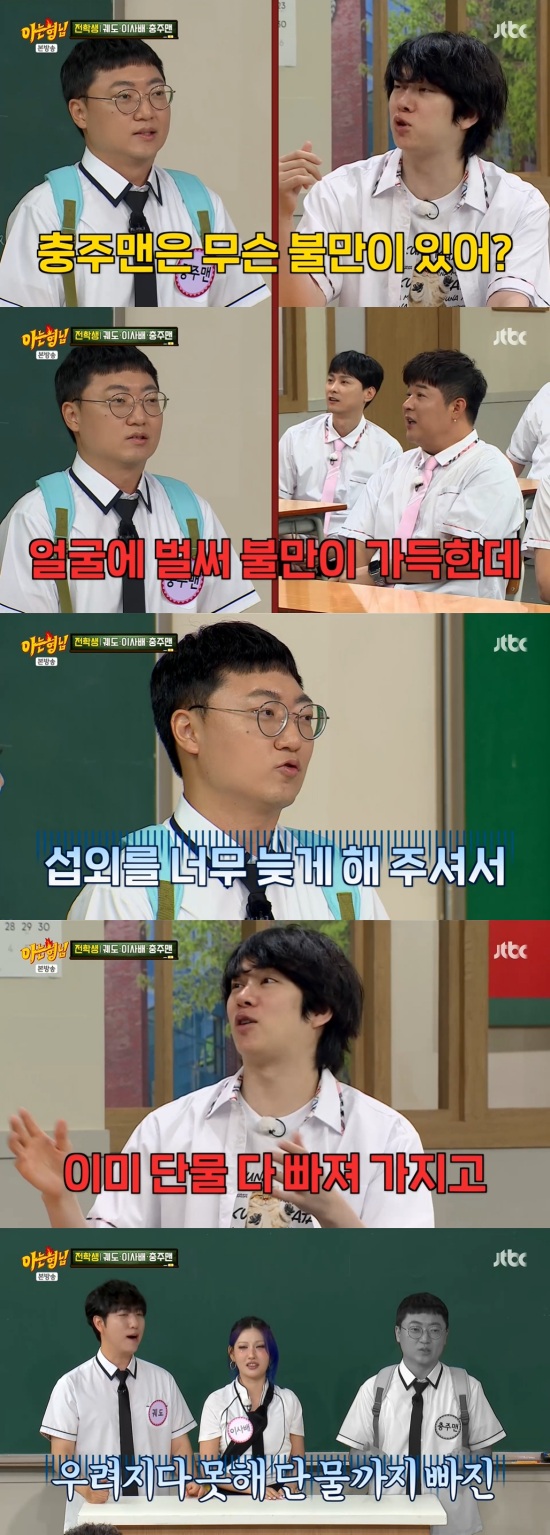 김희철이 "민원 넣으려고 하는 표정이네"라고 하자 충주맨은 "섭외를 너무 늦게 해주셔서 몸 둘 바를 모르겠다. 섭외가 너무 늦었다"고 불평했다.