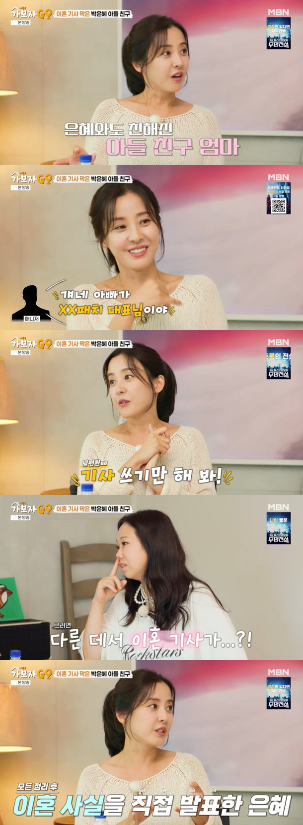 이날 박은혜는 "난 아이가 6살 때 데리고 나왔는데, 새로운 유치원을 가서 친구를 사귀었다. 아이 엄마도 너무 좋은 사람이더라"면서 말문을 열었다.