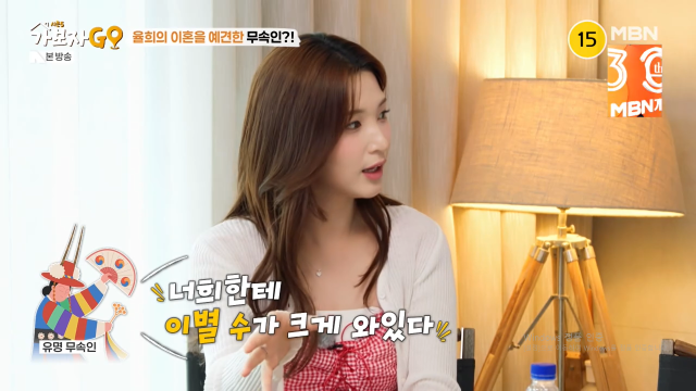 MBN ‘가보자GO’특히 율희는 처음 공개하는 일화라며 “유명 무속인을 1년 반 기다렸다가 전남편과 함께 찾아간 적이 있는데 (이혼을) 맞히셨다”고 말했다. 이어 “무속인이 ‘최근에 초상 치른 적 있냐’고 물어보더라. 그때 전남편 할머니께서 3주 전에 돌아가셨었다”며 “줄초상이 날 수 있는데, 그것도 이별수지만 너희에게는 이별수가 크게 와 있다. 줄초상이 나면 괜찮은데, 그게 아니라 너희 이별수일 것 같다’라고 했다. 그때가 7월이었고 9월에 실제로 이혼했다”고 털어놓아 모두를 놀라게 했다.