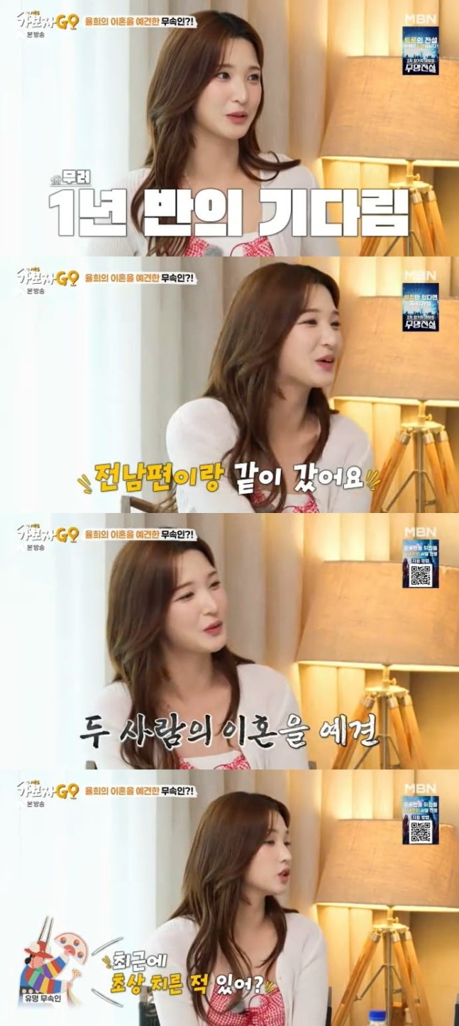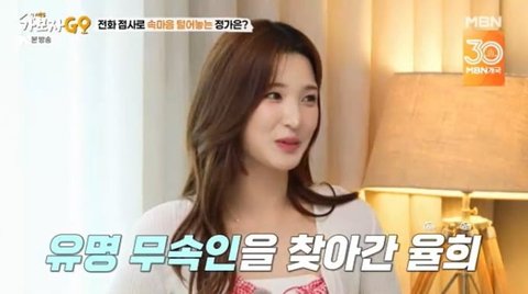 사진 = MBN '가보자GO'정가은이 위로할 사람이 없을 때 점을 봤다고 언급하자 이를 들은 율희는 “처음 말하는 건데, 유명 무속인을 1년 반 기다렸다가 전 남편과 함께 찾아갔다. 무속인이 ‘최근에 초상 치른 적이 있냐’라고 하더라. 그 당시 전 남편의 할머니께서 3주 전에 돌아가셨었다"고 말했다.