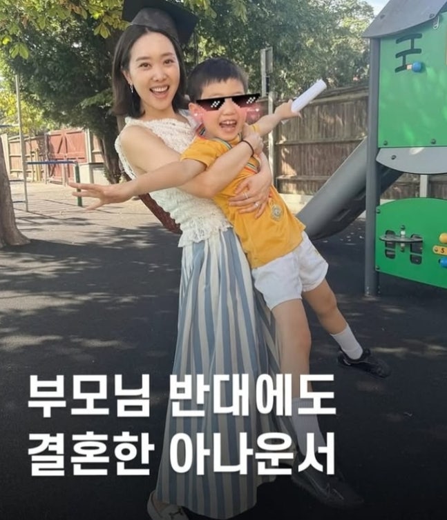 "부모님 반대에도 결혼한 아나운서"라고 적힌 이미지와 함께, 김민지는 "역시 나와 남편이 만나 결혼한 이야기는 도파민의 민족을 만족시키기엔 턱없이 밋밋한 듯"이라고 적었다.