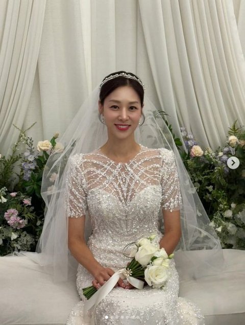 공개된 사진에는 웨딩드레스를 입고 포즈를 취하고 있는 장신영의 모습이 담겨 있었다. 장신영은 화려한 비즈 장식의 웨딩드레스를 입고 다소곳하게 앉아 미소를 짓고 있었다. 화려한 장식이 장신영의 미모를 더욱 돋보이게 만들었다.