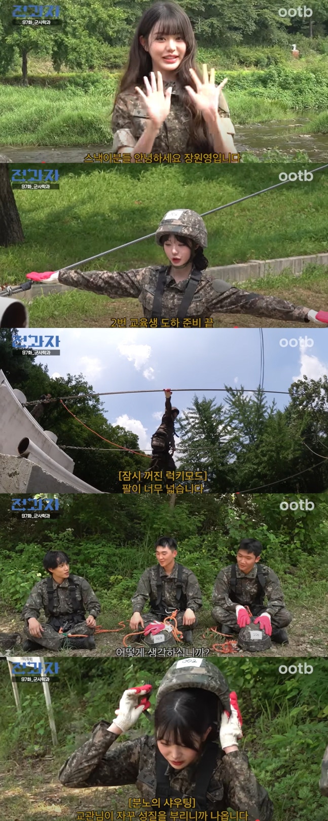 장원영은 "('전과자') 조회수 200만 공약으로 군대에 간다고 하셨는데 못 기다려서 제가 나오고 싶다고 했다. 마음이 꽃밭"이라며 산악 세 줄 타기까지 도전하며 열정적으로 훈련에 임했다. 그는 도하를 마친 뒤 "교관님이 자꾸 성질을 부리니까 제가 몰랐던 목소리(분노의 샤우팅)가 나온다"고 털어놔 웃음을 안기기도 했다. 그런데 이 과정에서 장원영이 목장갑을 거꾸로 착용한 모습이 포착돼 갑론을박이 일었다.