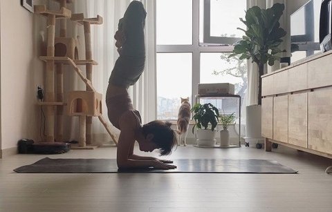 공개된 사진 속 심은우는 요가 매트 위에서 몸을 거꾸로 세운 채 팔 힘으로 지탱하고 모습. 심은우는 흐트러짐 없는 모습으로 보는 이의 시선을 사로잡았다.