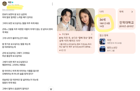 BTS 지민 위버스 글 공유