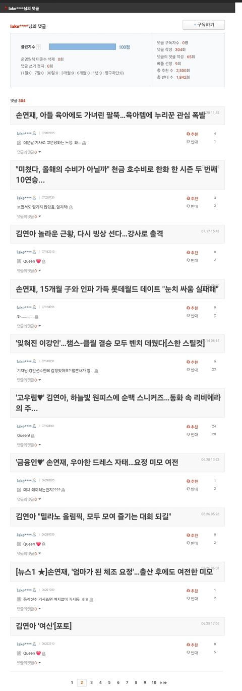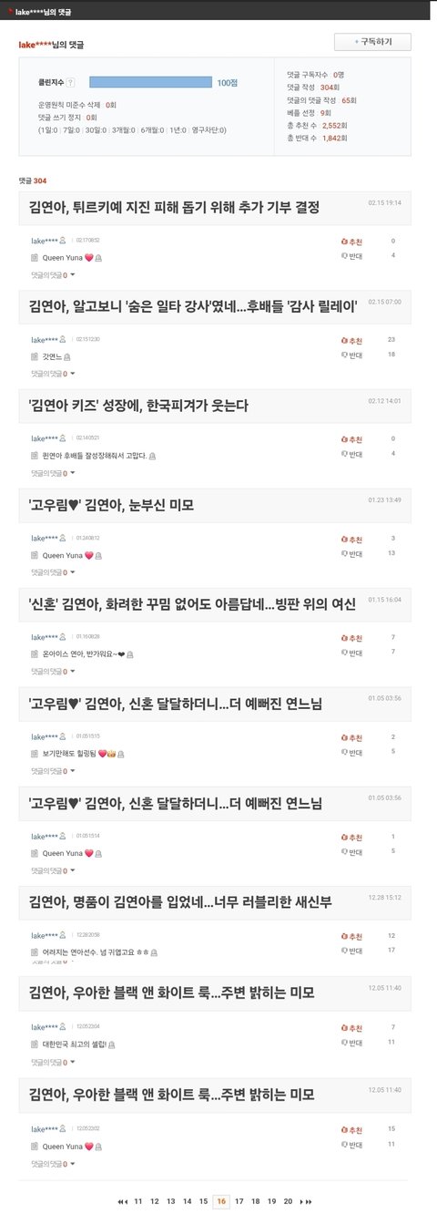 김연아 극성팬 lake****(송이송이송송이 아줌마)
