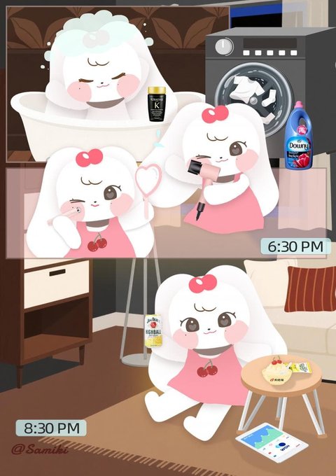 p.m 6시 30분 : 집에 돌아와서 '다우니'로 외출한 옷을 빨고 '케라스타즈'로 머리를 감고 '다이슨 드라이어'로 머리를 말리고 '매디큐브'로 피부케어를 해주고