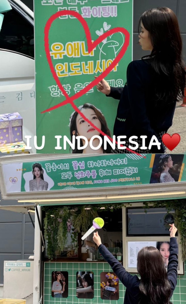 아이유는 인도네시아에 있는 팬에게도 커피차 선물을 받았다.