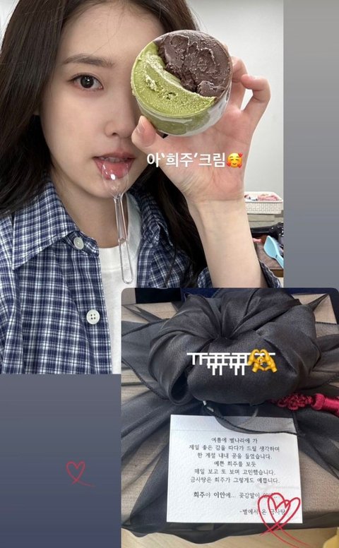 사진 속 아이유는 아이스크림을 들고 귀여운 포즈를 취하고 있다.