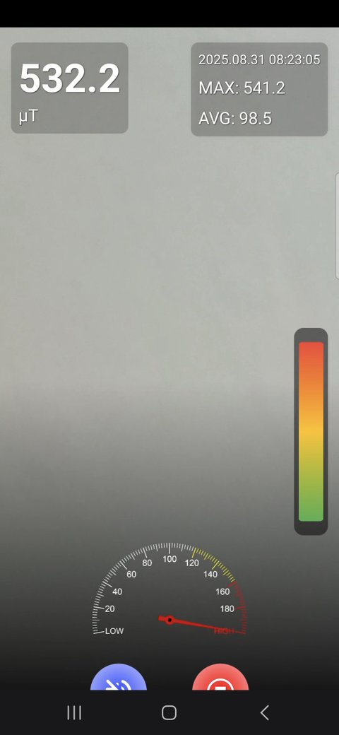 전자기장 측정을 해보면 각차에서 500~800ut까지 나옵니다
