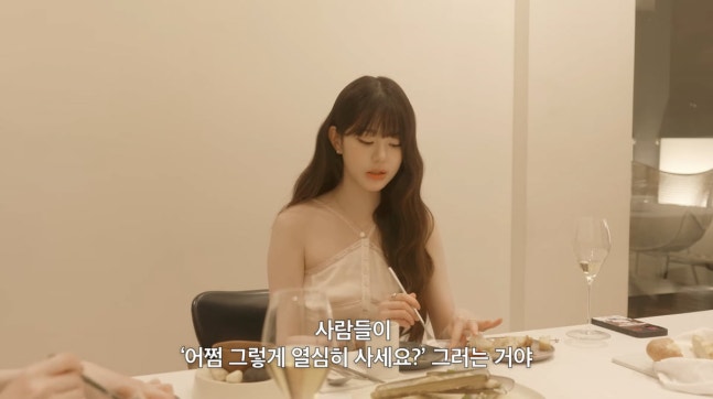 강민경과의 식사 자리에서 장원영은 '살인적 스케줄'에 대해 "내가 열심히 살았다고 생각한 적이 없다. 내 이름 걸고 하는 일이니 '제대로 해야 한다'는 생각이었지, 열심히 한다는 의미가 아니었다"고 솔직하게 털어놨다.