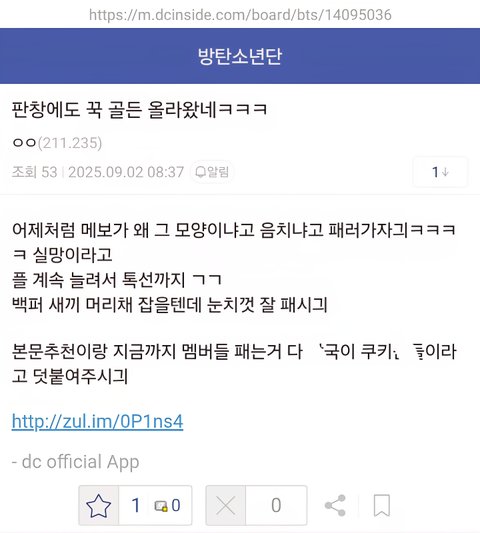 추반 정국이를 라이브로 까다니 우습네
