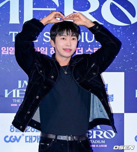 [OSEN=지형준 기자] 22일 오후 서울 CGV 용산 아이파크몰에서 영화 '임영웅 아임 히어로 더 스타디움' 언론시사회 및 무대인사가 열렸다.‘임영웅│아임 히어로 더 스타디움’은 지난 5월 약 10만 명의 영웅시대와 서울월드컵경기장을 하늘빛으로 가득 채운 임영웅의 첫 스타디움 입성기를 다룬 영화로, 공연 실황과 함께 비하인드가 그려진다.임영웅이 포토타임을 하고 있다. 2024.08.22 / jpnews@osen.co.kr