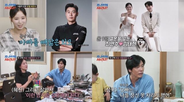 1일 방송된 TV조선 ‘조선의 사랑꾼’에서는 9월의 신부가 될 예정인 모델 최연수가 게스트로 함께했다. 띠동갑 차이인 밴드 딕펑스 멤버 김태현과의 결혼을 앞뒀다는 소식에 김지민은 “왜 이렇게 일찍 결혼하냐”고 물었다. 이에 최연수는 “5년을 만나서 오래 만나기도 했고, 어차피 결혼할 건데 할 거면 빨리해야겠다 싶었다”고 밝혔다. 그러자 황보라는 “난 10년을 만났는데 뭘…”이라며 너스레를 떨어 웃음을 자아냈다.