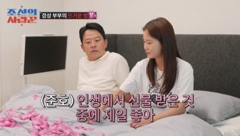 침대 설치가 완료되자 김지민은 럭셔리 호텔에서나 볼 법한 수건 백조와 꽃잎으로 데커레이션까지 완벽하게 마치며 서프라이즈 준비를 마쳤다. 모든 준비가 끝나자 때마침 김준호가 돌아왔다. 서프라이즈 선물을 빨리 보여주고 싶었던 김지민은 “중고 거래할 거 또 찾았다”며 자연스럽게 김준호를 방으로 유인했다. 방문을 연 김준호는 침대를 보자 배시시 웃으며 김지민을 쳐다봤고 벽치기로 애정을 표현했다. 이어 김지민은 두 번째 선물인 TV까지 선사했다. 이를 본 김준호는 “인생에서 선물 받은 것 중에 제일 좋아”라며 김지민과 함께 새 침대에 누웠다. 결국 김지민과 김준호는 “좀 나가주실래요?”라며 제작진을 쫓아내, 꽁냥꽁냥한 시간을 예고했다.