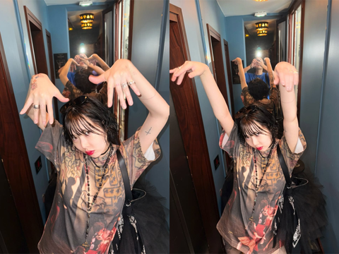 현아 사진./현아 인스타그램공개된 사진 속 현아는 화려한 프린팅 티셔츠를 매치해 강렬한 분위기를 자아냈다. 젖은 듯한 헤어스타일과 짙은 레드 립으로 시크하면서도 도발적인 매력을 드러냈다. 그는 여러 개의 실버 링과 크로스 네크리스가 착용해 개성을 극대화했다. 카메라 앞에서 과감한 포즈를 취하며 자유분방한 에너지를 뽐냈다.