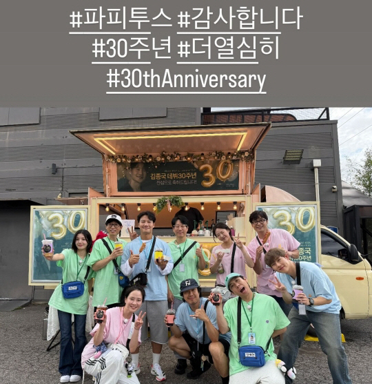 김종국은 2일 "파피투스 감사합니다. 30주년 더 열심히"라는 글과 함께 사진을 올렸다.