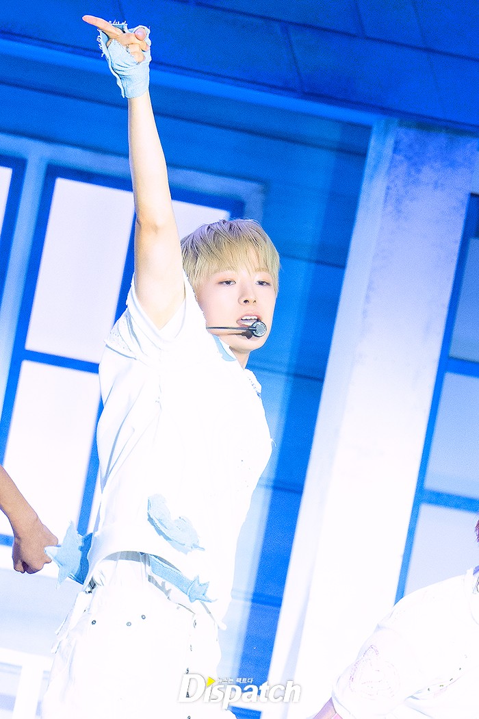 유우시는 파워풀한 무대 매너로 신곡 무대를 꾸몄다. 훈훈한 비주얼이 돋보였다.