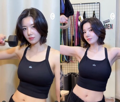 멋스러운 브라톱과 숏팬츠를 입고 등장한 권은비는 테이블탑 브릿지, 플랭크 숄더 탭, Y-T-W 레이즈 등을 연이어 소화했다. 안정적인 자세로 운동을 마친 권은비는 멋진 포즈를 취하며 탄탄한 바디라인을 자랑했다.