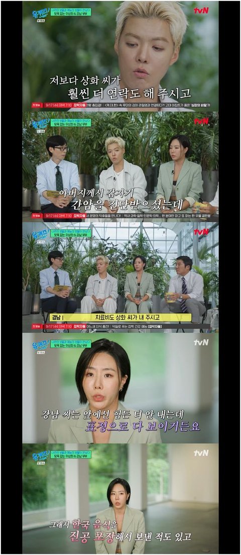 이상화 또한 강남의 아버지가 간암 진단을 받자 최선을 다했다. 이상화는 “아버님이 간도 안 좋으시고, 심장도 안 좋으셨다. 강남은 티는 안 내지만 나는 표정으로 보이더라. 그래서 일본으로 스케줄을 빼서 갔고, 한국 음식 좋아하셔서 진공 포장해서 가져다 드리고, 짠 거를 배제하고 보냈다. 지금 많이 회복하셔서 제가 안심이 된다”라며 따뜻하고 훈훈한 모습을 보였다./osen_jin0310@osen.co.kr
