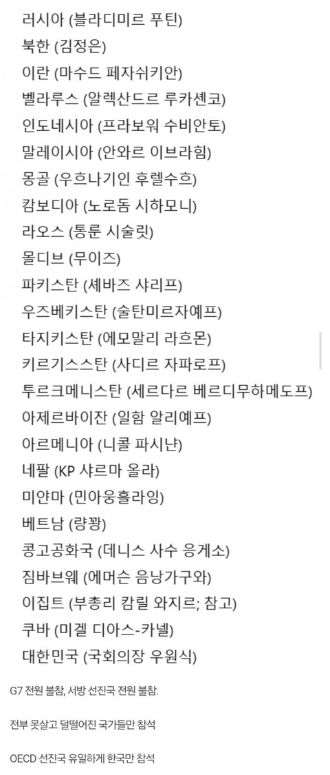 중국 전승절 참가국 명단