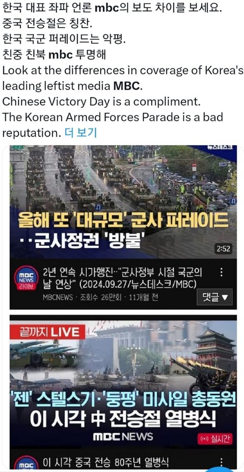 중국방송국 MBC의 방송 차이점 비교