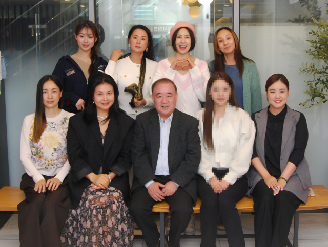 내달 창단을 준비 중인 '한스타 미스코리아 파크골프단'. 왼쪽 위부터 시계방향으로 김채원(2024 미스코리아 진), 김미숙(1994 미스코리아 미), 이지안(1996 미스코리아 진), 권민중(1996 미스코리아 한국일보), 기윤주(2002 미스코리아 미), 박정철(한국연예인스포츠협회장), 김인영 단장, 김수현(2006 미스코리아 한국일보, 미). /한스타미디어