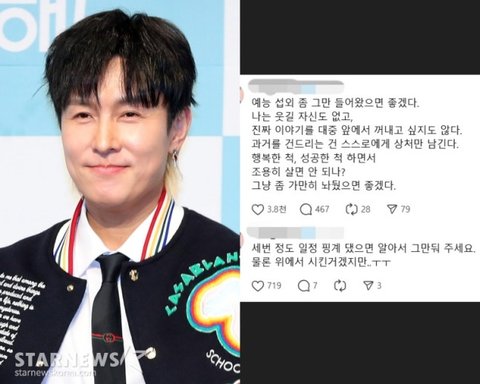 지난 4일 김동완은 개인 SNS에 "예능 섭외 좀 그만 들어왔으면 좋겠다. 나는 웃길 자신도 없고, 진짜 이야기를 대중 앞에서 꺼내고 싶지도 않다. 과거를 건드리는 건 스스로에게 상처만 남긴다. 행복한 척, 성공한 척 하면서 조용히 살면 안 되나? 그냥 좀 가만히 놔뒀으면 좋겠다"라고 밝혔다.